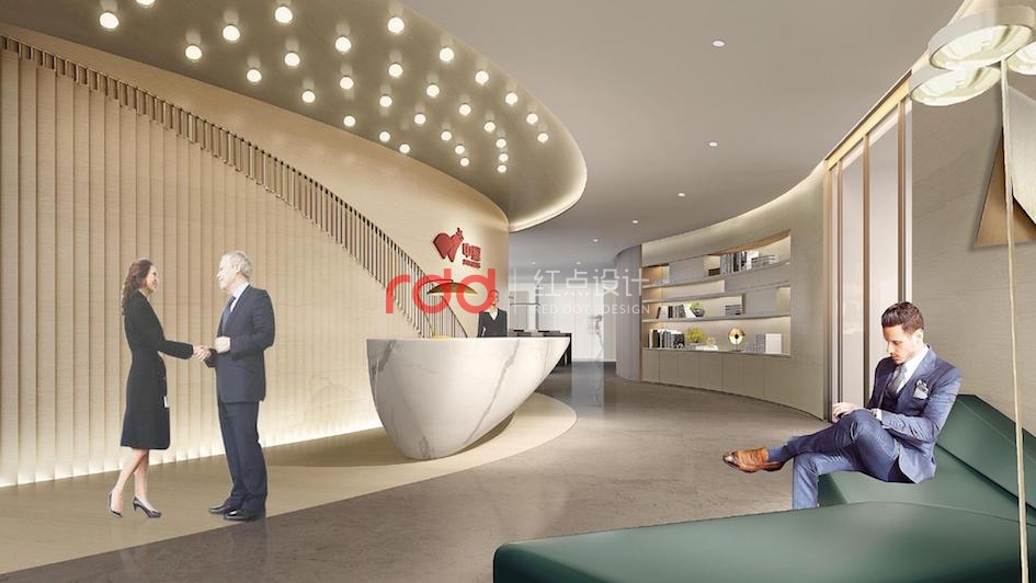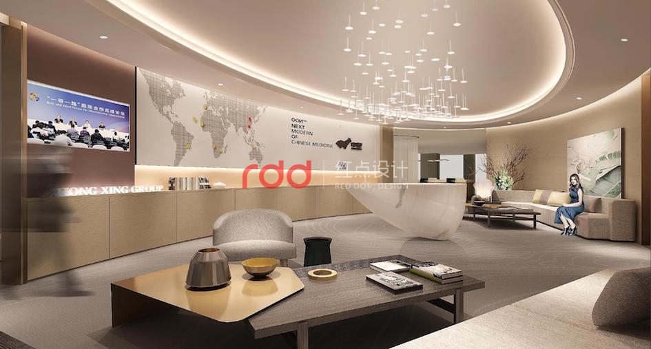 乘著徐徐而上的電梯來到九層,接待吧臺與整體空間講究對稱平衡,通過巧妙的吧臺構成形式、空間吊燈的位置,呈現靈動的立面關系,有效緩解空間的呆板。放眼望去,企業的發展歷程及榮譽的光輝背景盡收眼底,木飾面與白墻的過道簡單明了。