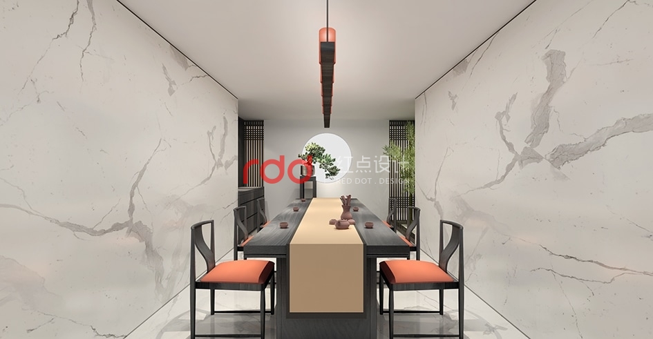 相對于西方來說,中國傳統文化更注重“空”,注重虛空和留白的營造。因此,設計師在墻面的設計及裝飾上并沒有重復的運用材質和藝術裝置堆滿整個空間。讓整面墻干凈整潔甚至留白也不失為一個明智之舉。