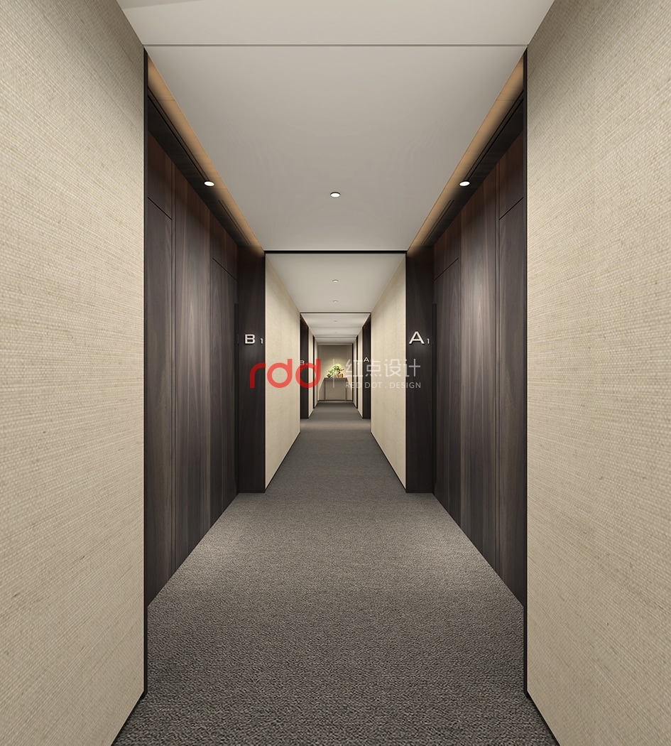 本案是由53間網紅直播間和2個大的休閑茶水區組成的辦公空間。此項目有別于其它的網紅工作室,因為這是廣州中星集團旗下的網紅多媒體中心,中星是以教育為主的,所以設計師以現代中式風格為主調。整體空間以木飾面為主,配合仿大理石地面和深灰色的印花地毯運用,空間增添幾分文雅的書香氣。