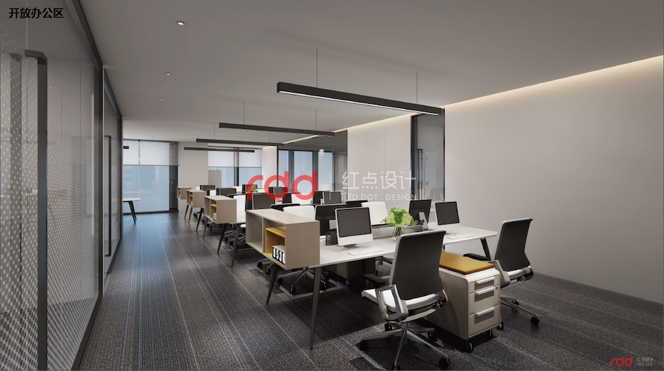 在設計中注重“空”,注重虛空和留白的營造。公共辦公區墻面大面積的留白,結合散射下來的柔和燈光,營造出比較舒適的辦公環境。