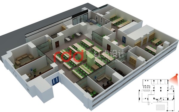 辦公區(qū)內(nèi),以綠色的辦公家具作點(diǎn)綴。