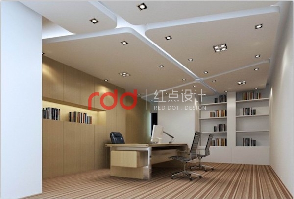 總經(jīng)理辦公室以整體木飾面柜子為背景,簡單時(shí)尚的造型天花。