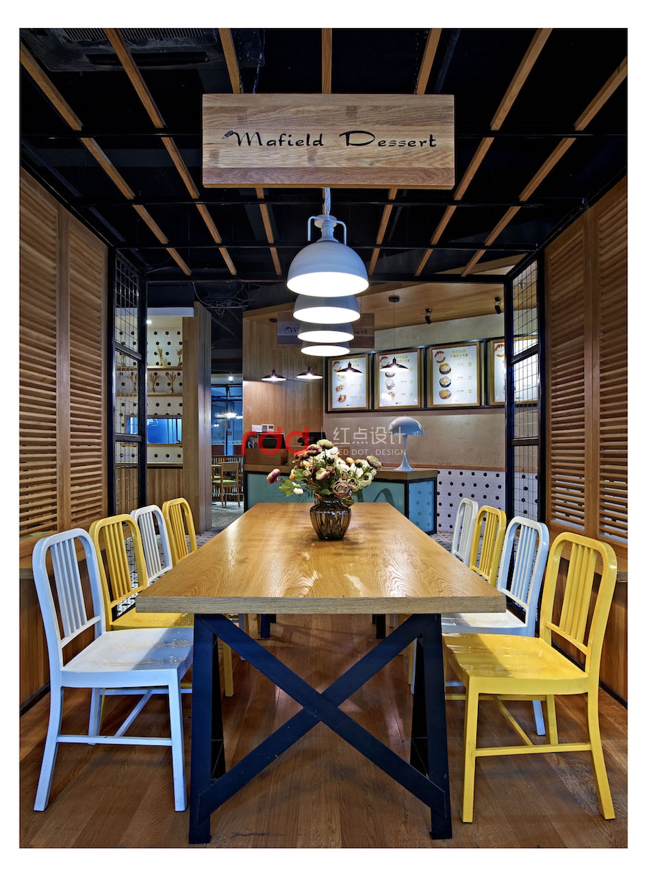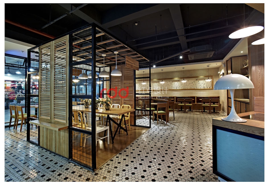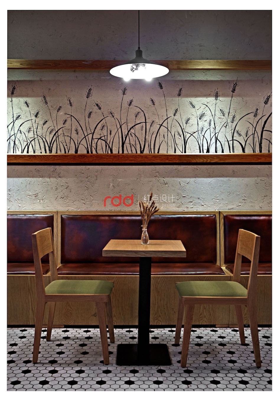 獨(dú)具匠心的空間劃分,大廳以麥色為主基調(diào),橡木板染色,網(wǎng)格鐵藝與橡木柵欄圈出一片靜謐安詳,明亮的燈光瀉落在餐桌的小雛菊上,挪動(dòng)干凈簡易的座椅,轉(zhuǎn)身推開窗戶,風(fēng)吹麥浪,起起伏伏,甜甜的氣息迎面撲來,在心底吹起一葉屬于回憶的麥片,發(fā)人深省。