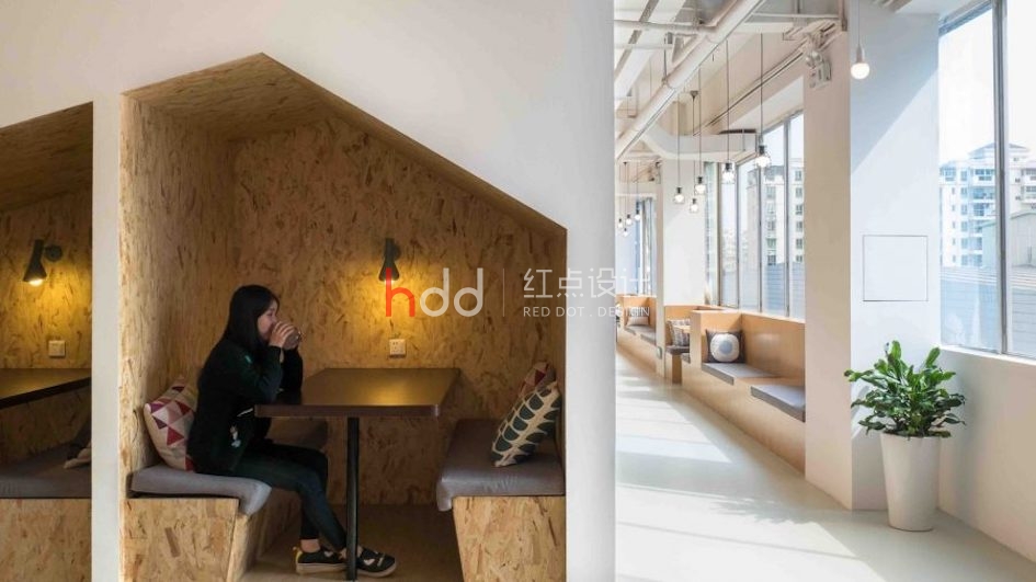該項目位于深圳市北面龍華老工業(yè)區(qū)一個工業(yè)建筑的頂層和屋頂閣樓,改造成一個聯(lián)合辦公空間,包含了15個辦公室、50個開放式固定工位,和一系列共享的討論室、水吧和沙龍區(qū)。