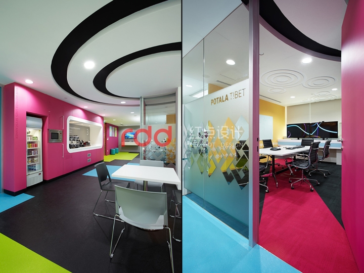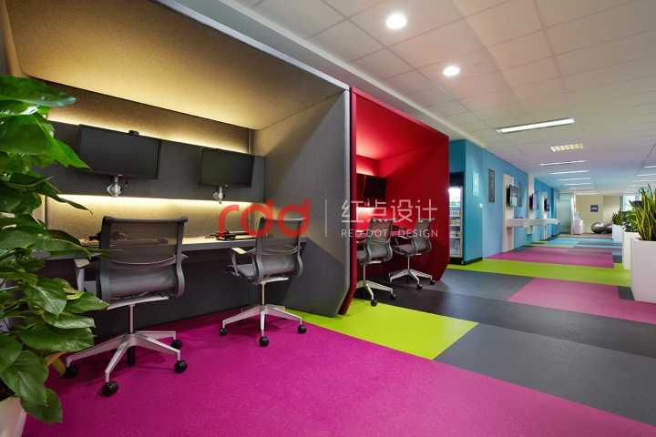 當(dāng)你走出升降機(jī)門廊,就如同開始了一段趣味之旅,帶領(lǐng)參觀者進(jìn)入一個(gè)頗具吸引力的主接待處。開放概念設(shè)計(jì)的等候區(qū)內(nèi)的咖啡角歡迎每一位到訪者。“Buzzi Booths” 擴(kuò)展在1600平方米的辦公室空間內(nèi),為那些在工作時(shí)需要獨(dú)處的人提供空間,為合作交流者自由討論和工作團(tuán)隊(duì)內(nèi)部的頭腦風(fēng)暴提供了會(huì)面地點(diǎn)。