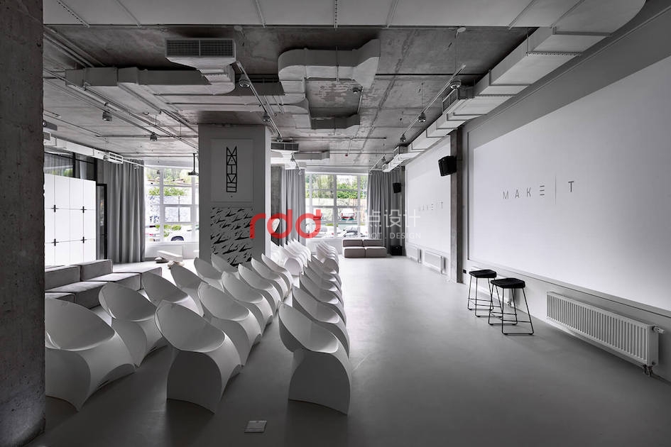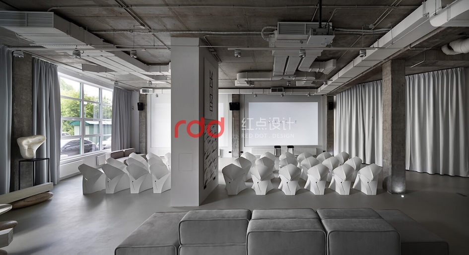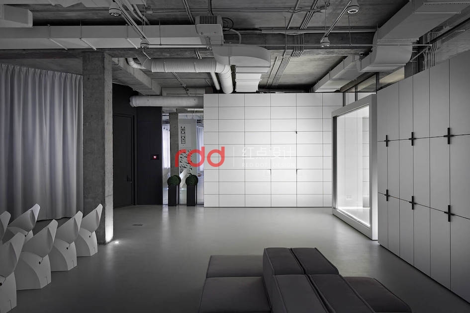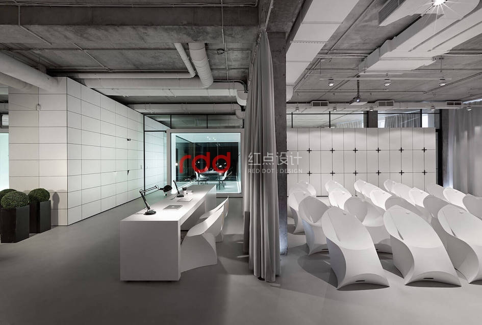 本例辦公室設計主要以空白紙張為概念。一張空白紙張,它可以轉化為一切:一幅畫,一本好書的頁面,或成為一個全新的東西。辦公室設計的中心是白色的立方會議室——兩個區域之間的通道。有一個封閉的外殼,以提供隔音。工作場所被區分為兩個白色的大島嶼,布局格外舒適。